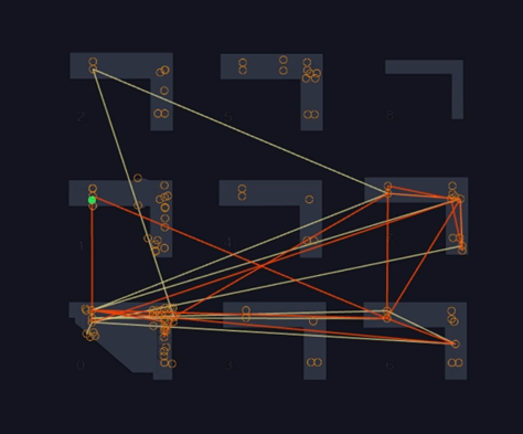 - Poikkeava kulku suhteessa viiteryhmään. LOUHE-palvelu kykenee muodostamaan kulkutapahtumien perusteella erilaisia referenssiryhmiä. Kyse on siitä, että kulunvalvontadatan perusteella eri ”kulkijoiden” välillä voidaan havaita samankaltaisuutta kulkureittien, käytettyjen ovien ja kulkemisen kellonaikojen osalta. Näin yksittäisiä kulkutapahtumia verrataan automaattisesti viiteryhmien kulkuihin, jolloin poikkeavuudet pystytään havaitsemaan. Tätä analysointia voidaan tehostaa, mikäli edellä mainittu viiteryhmä tai muu affiliaatio voidaan suoraan tuoda esimerkiksi HR-järjestelmästä.